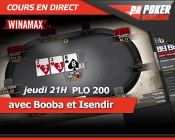 Pour fêter la semaine Winamax Million Event - 960€ ajoutés, deux coachs Poker-Académie, Isendir et Booba, vont organiser un cours en direct en PLO200 sur la room Winamax.