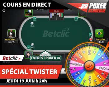Poker-Académie organise du 14 au 25 juin un challenge spécial Twister. Les règles sont simples : les joueurs qui jouent le plus de parties gagnent !