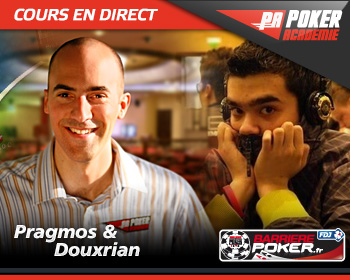 Rendez-vous ce Mardi à 21h00 pour un cours en direct lors duquel Douxrian jouera en direct sur les tables de la room qui monte à toute vitesse en ce moment : Barrierepoker.fr. Il sera accompagné de Pragmos.