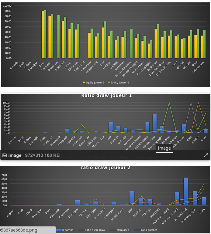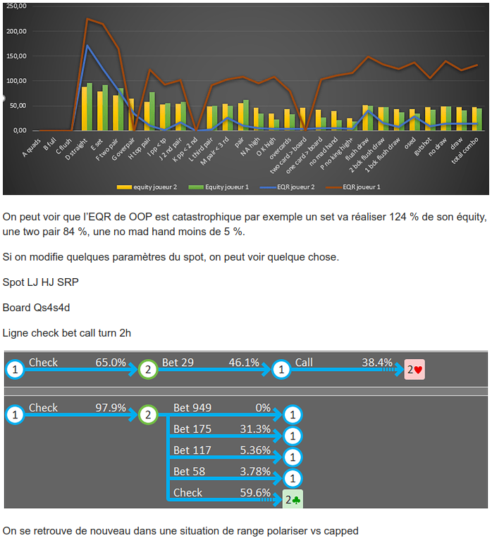 Joueur 1 est OOP et 2 IP (equity apres bet pour IP, et root pour OOP)