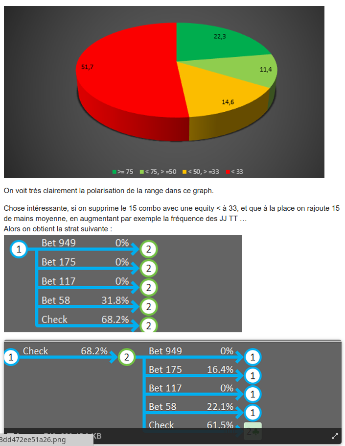 On peut si on le souhaite, prendre chaque catégorie de mains, et étudier quelle sont les combos que l’on préfère bet, par exemple :