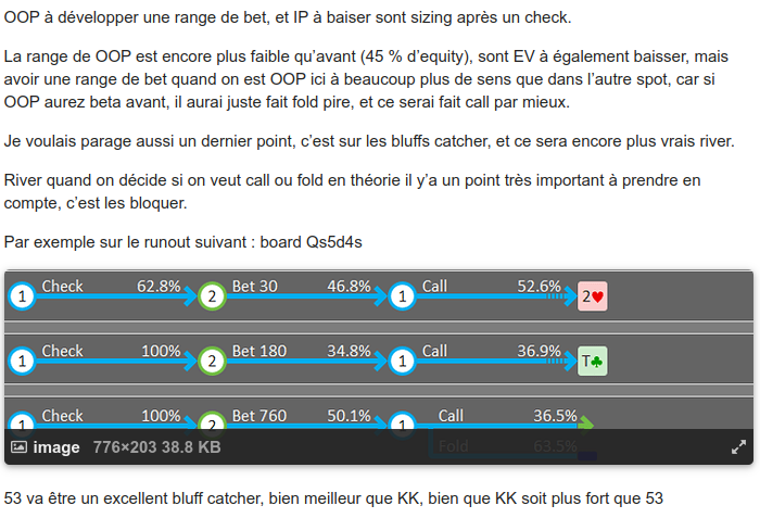Dans toutes les formations ou OOP est l’ agresor preflop, on va avoir une range de bet, quand c’est IP l’agresore preflope, on va check full range, sauf 3 bet pot D HJ
