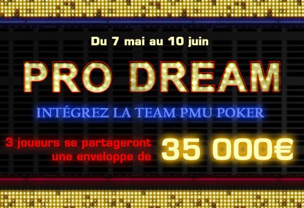 Jusqu'au 10 juin, PMU.fr offre la possibilité de devenir joueur de poker professionnel. Les 3 gagnants de cette opération joueront aux couleurs de PMU.fr et aux côtés des membres de la Team Pro PMU lors de tournois physiques pendant un an et se partagerons 3 enveloppes